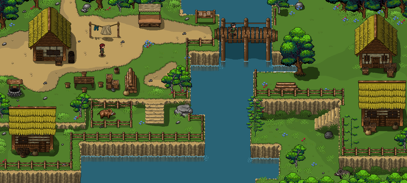 Bring your classic top-down RPG or village simulator to life with this comprehensive pixel art pack! This asset pack provides everything you need to build stunning, detailed, and cohesive fantasy environments. Featuring a warm, earthy color palette and a clean pixel style, these assets are perfect for creating bustling towns, mysterious forest paths, rocky coastlines, and cozy player homes.